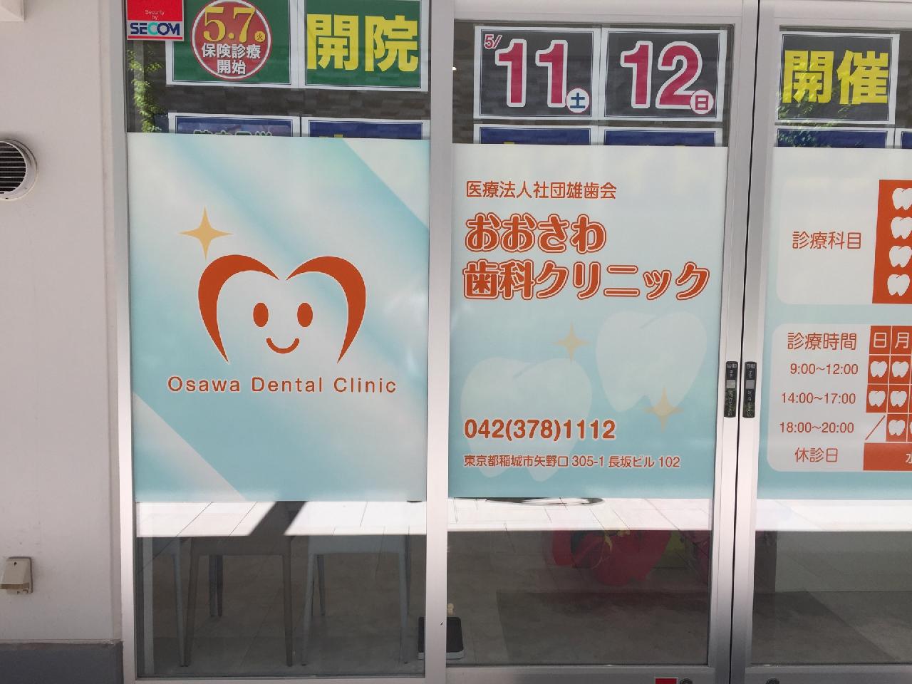 歯科医院様のガラス面フィルムの製作・施工をさせて頂きました。東京都稲城市