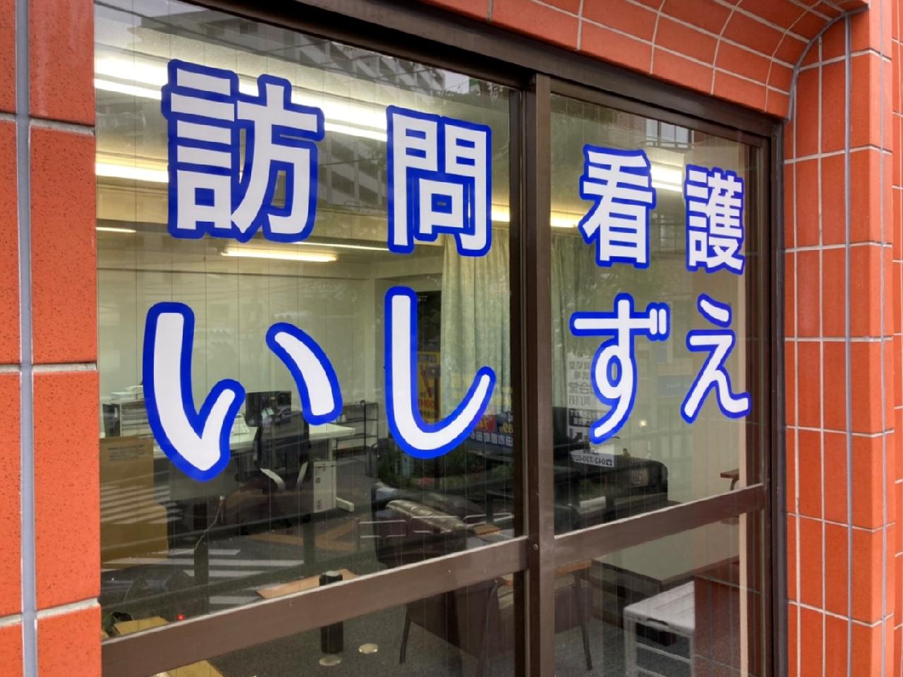 パネル看板を設置、ガラス面に切り文字シートを施工、ドア部分にシートを施工しました。東京都町田市