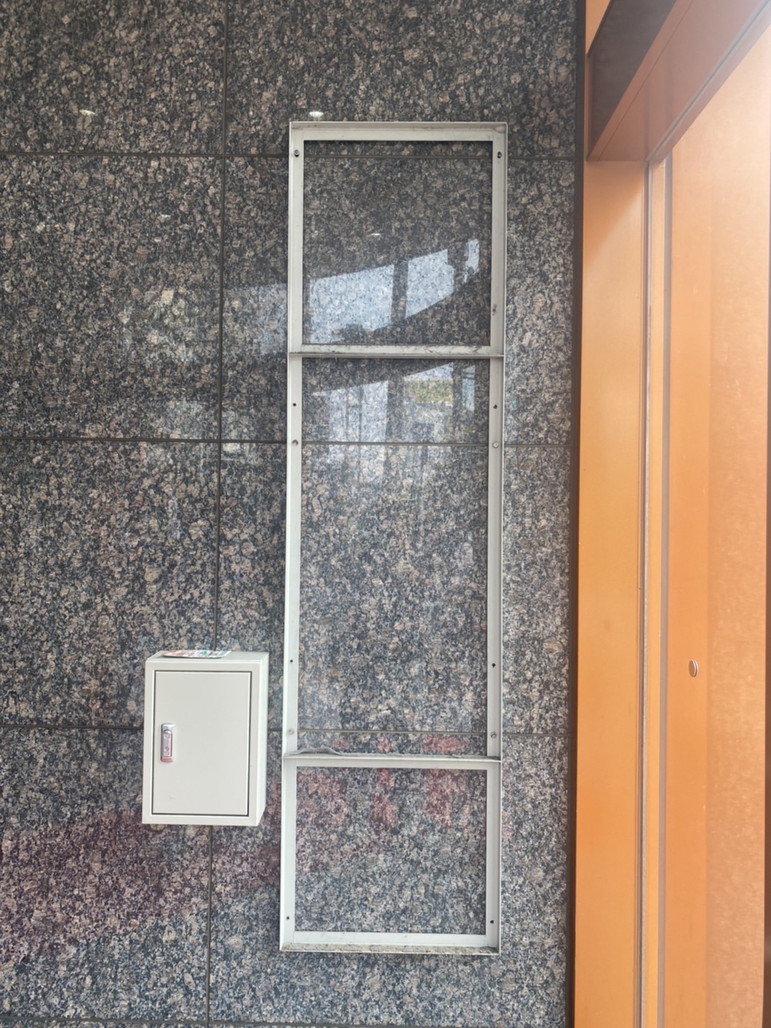 既存のビルの案内板を撤去して、新規に案内板を設置しました。
